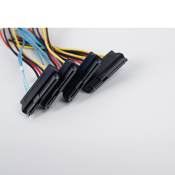 產品規(guī)格:MINI SAS HD 4I SFF 8643 TO SAS 29P*4+電源HSG;鍍錫銅,成型工藝;支持熱插拔
