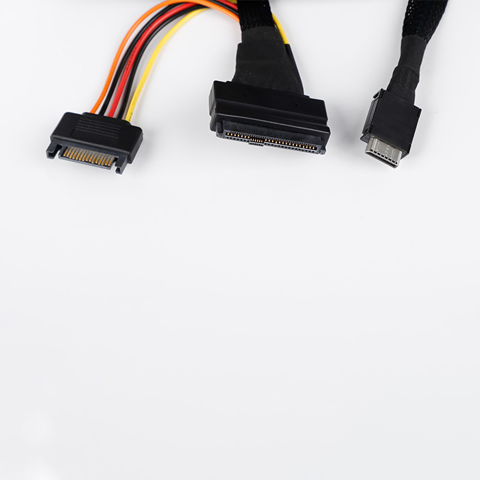 產(chǎn)品規(guī)格:U.2 SAS 68P SFF8639 TO MINI SAS HD 4I SFF 8643 + SATA 15P/M POWER ;鍍錫銅,成型工藝;支持熱插拔