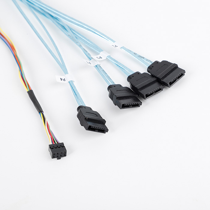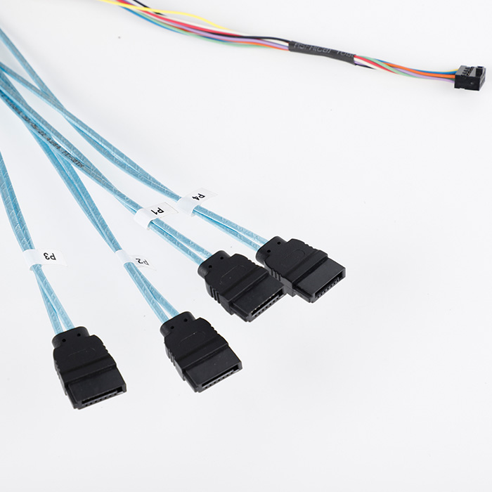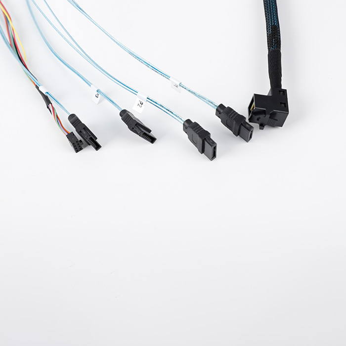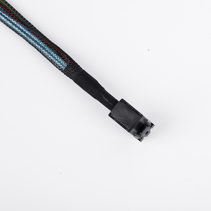 產(chǎn)品規(guī)格:MINI SAS HD 4I SFF 8643 下彎 TO SATA 7P/F帶彈片*4+杜邦HSG;鍍錫銅,成型工藝;支持熱插拔